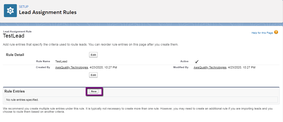 - Go to Setup and type Lead Assignment Rule in the quick find box.